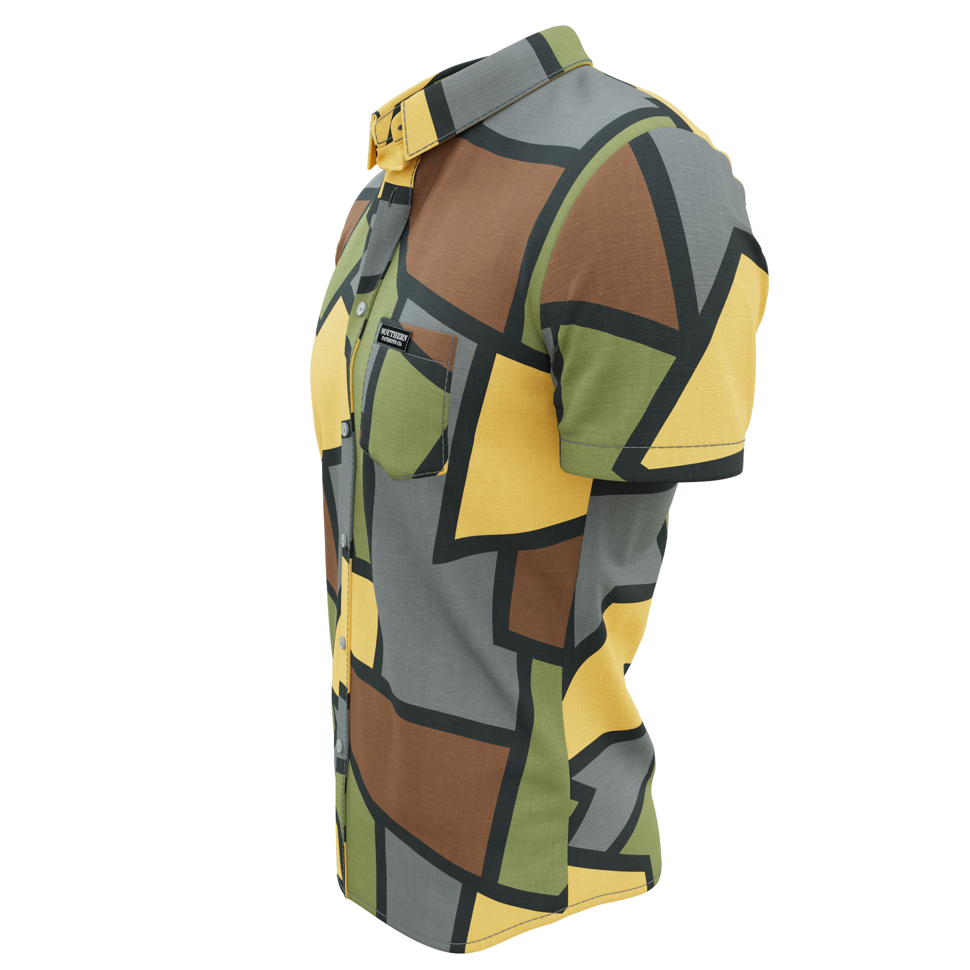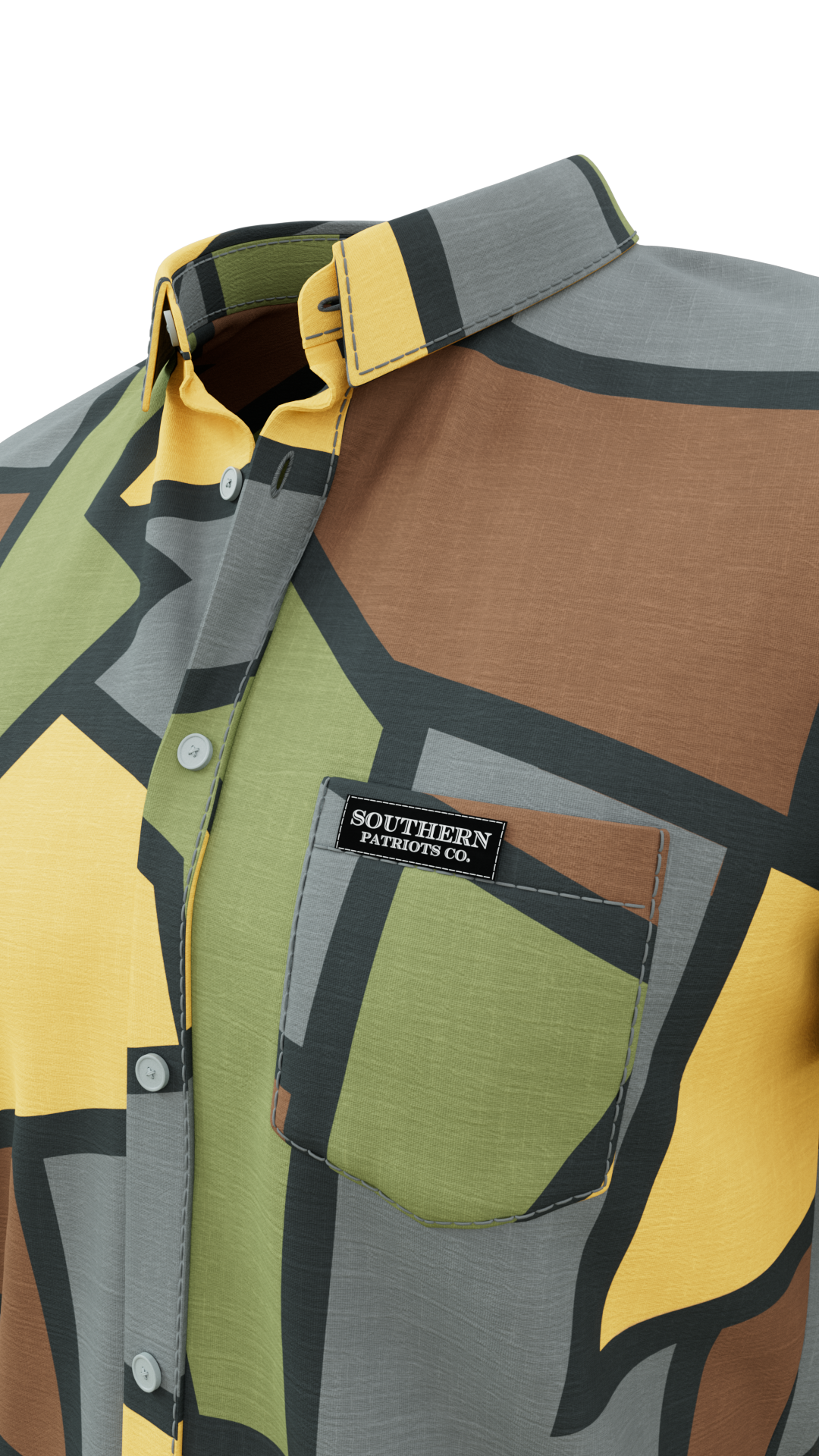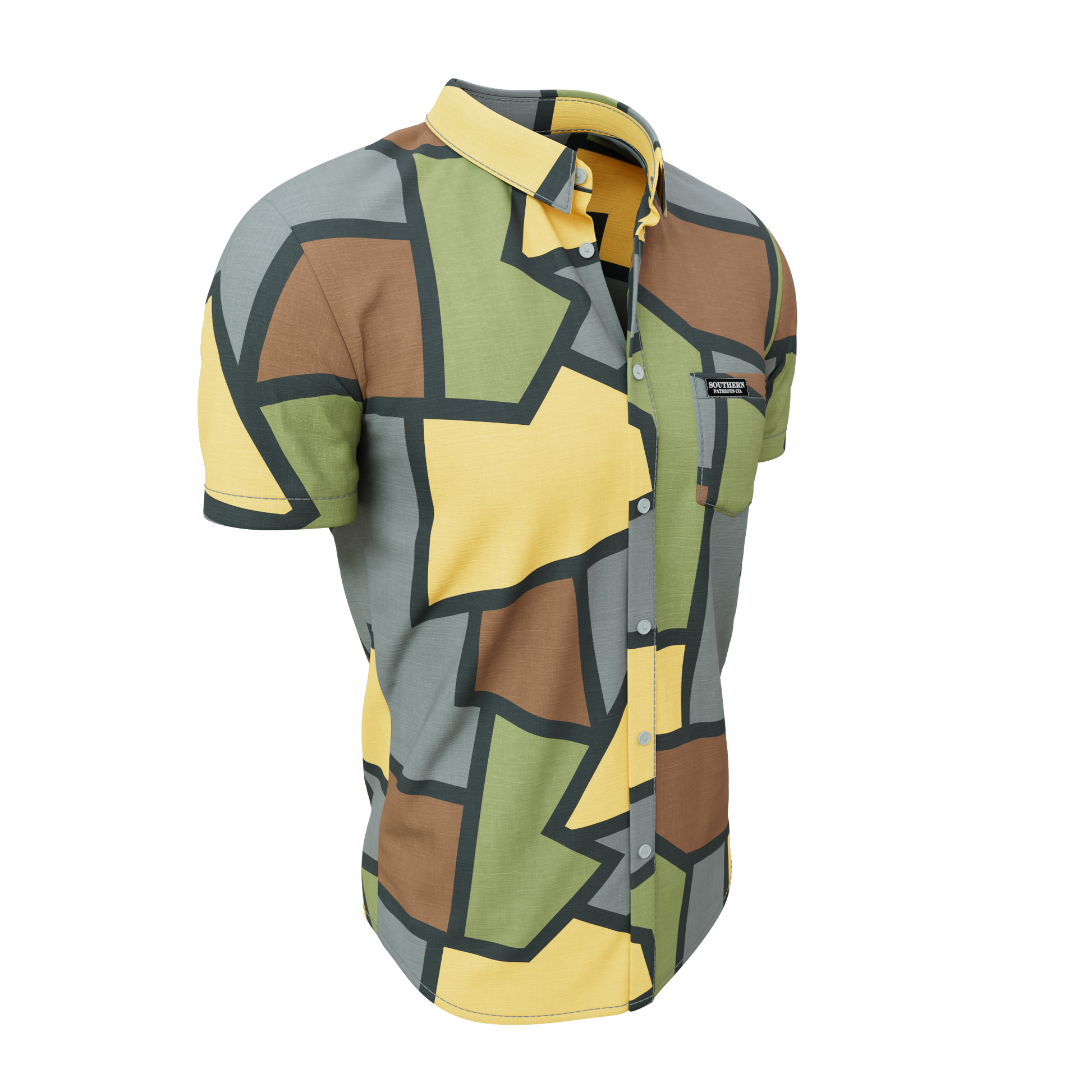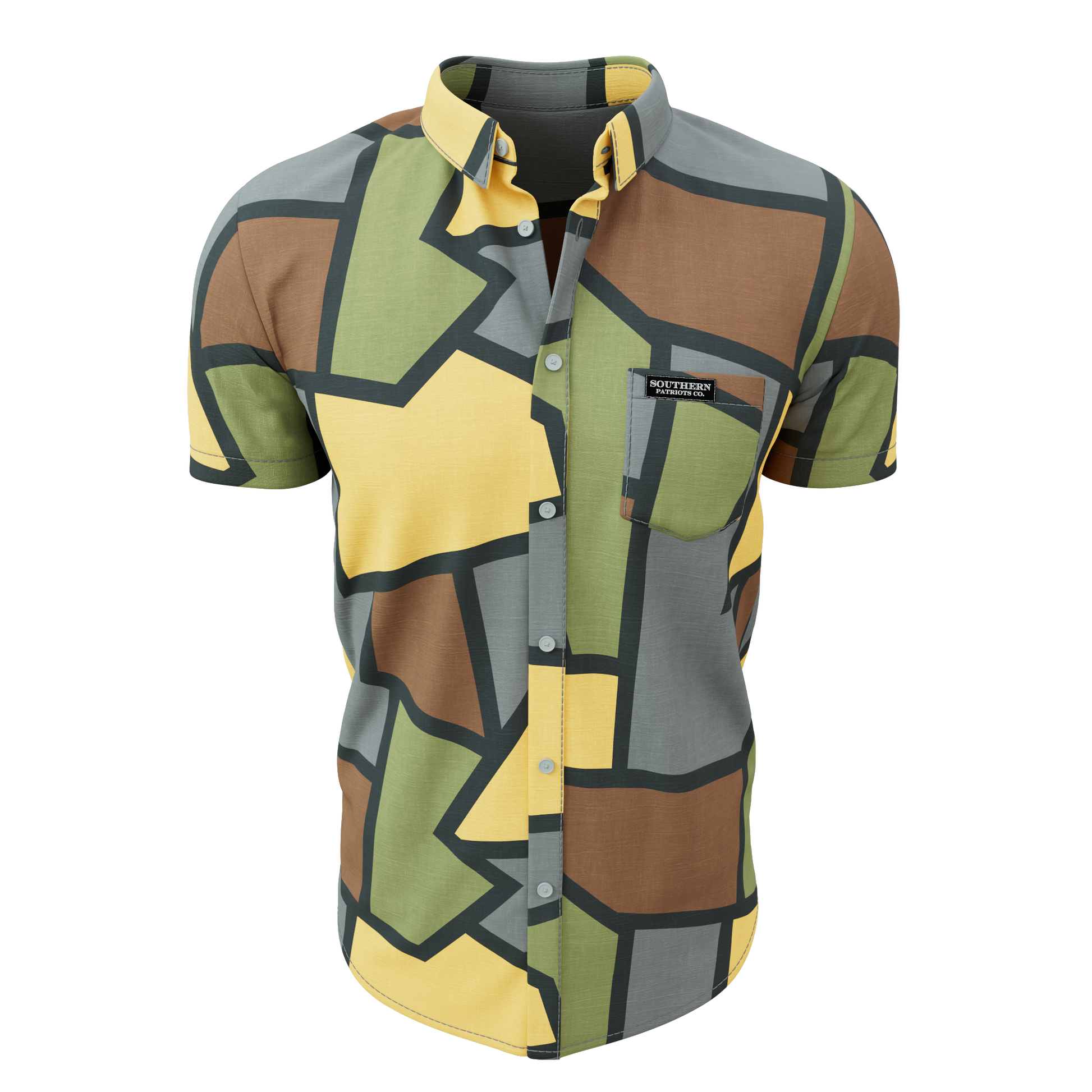 The first camo ever used in battle in World War I in 1918. It is 92% Poly, 8% Spandex. It is stretchy, durable, quick drying, moisture wicking, and it is UV 50+.