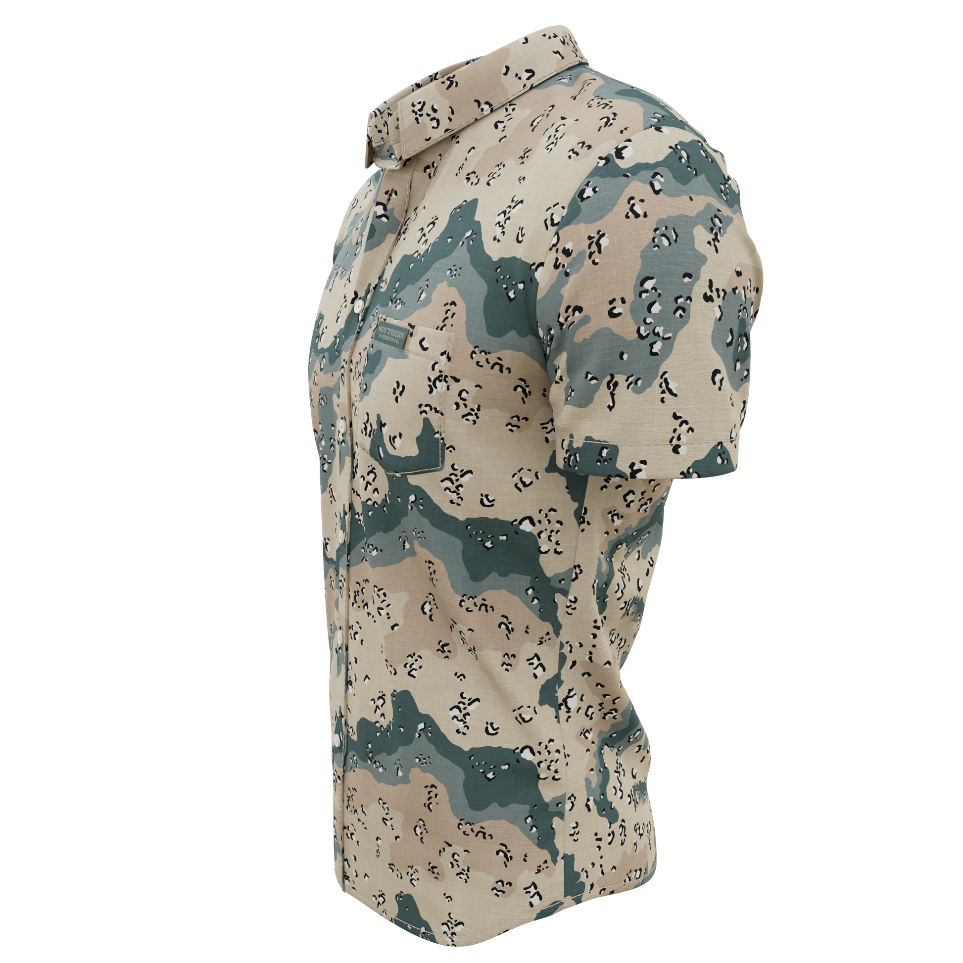 6 Color Saudi, based off American DBDU, often known as “Chocolate Chip.” The pattern is the same with alternate coloring. It is 92% Poly, 8% Spandex. It is stretchy, durable, quick drying, moisture wicking, and it is UV 50+.