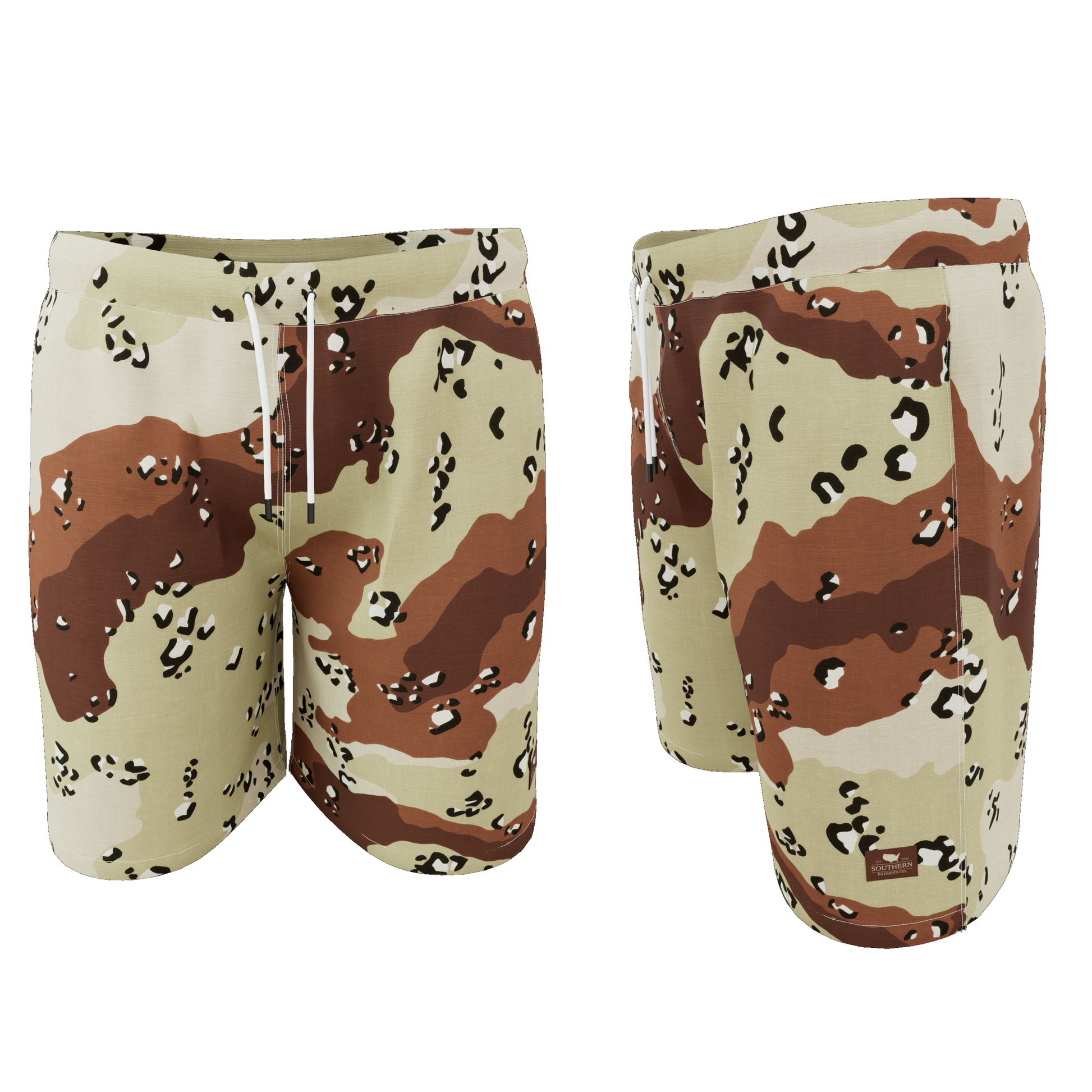 American DBDU (Desert Battle Dress Uniform), often referred to as “Chocolate Chip,” used by our Armed Forces in the Gulf War in 1991. It is 92% Poly, 8% Spandex. It is stretchy, durable, quick drying, moisture wicking, and it is UV 50+.
