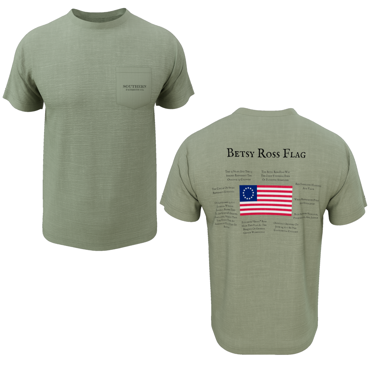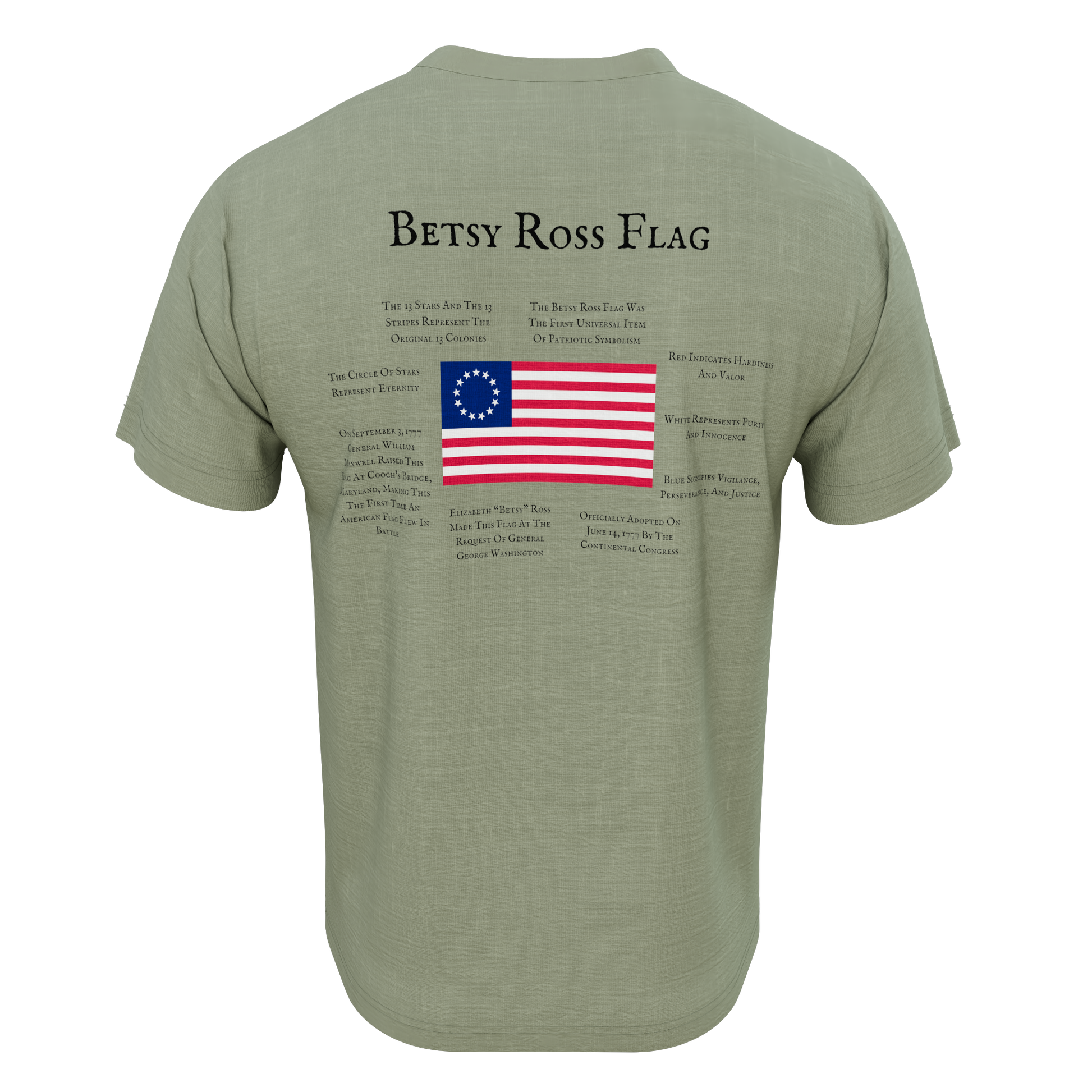 The Betsy Ross flag with interesting facts. 50% Cotton, 50% Polyester.