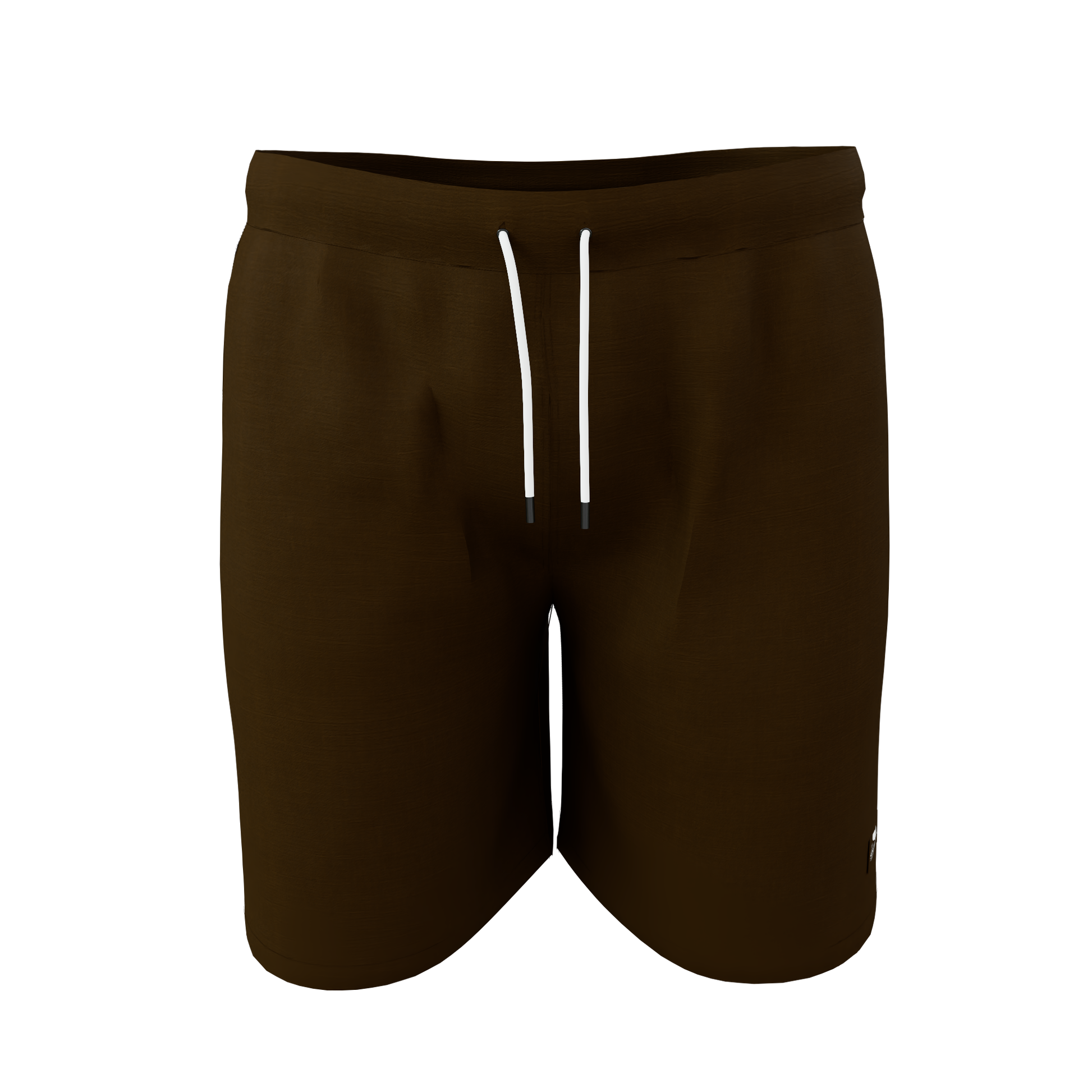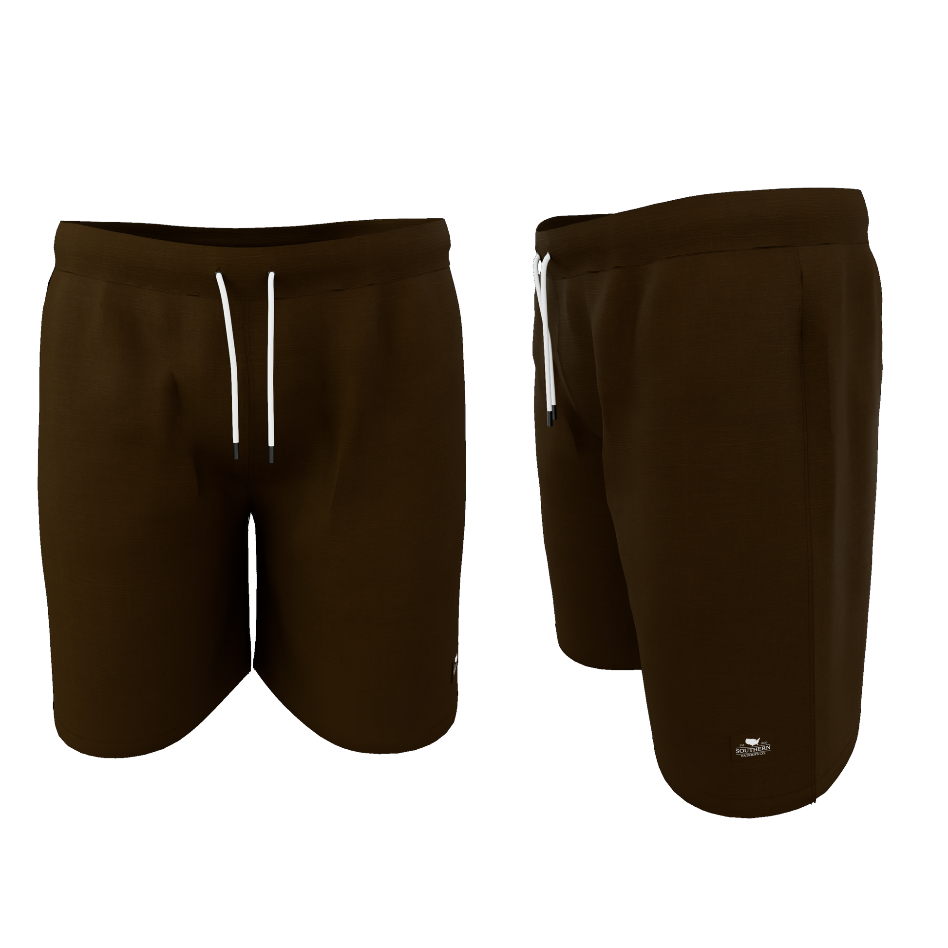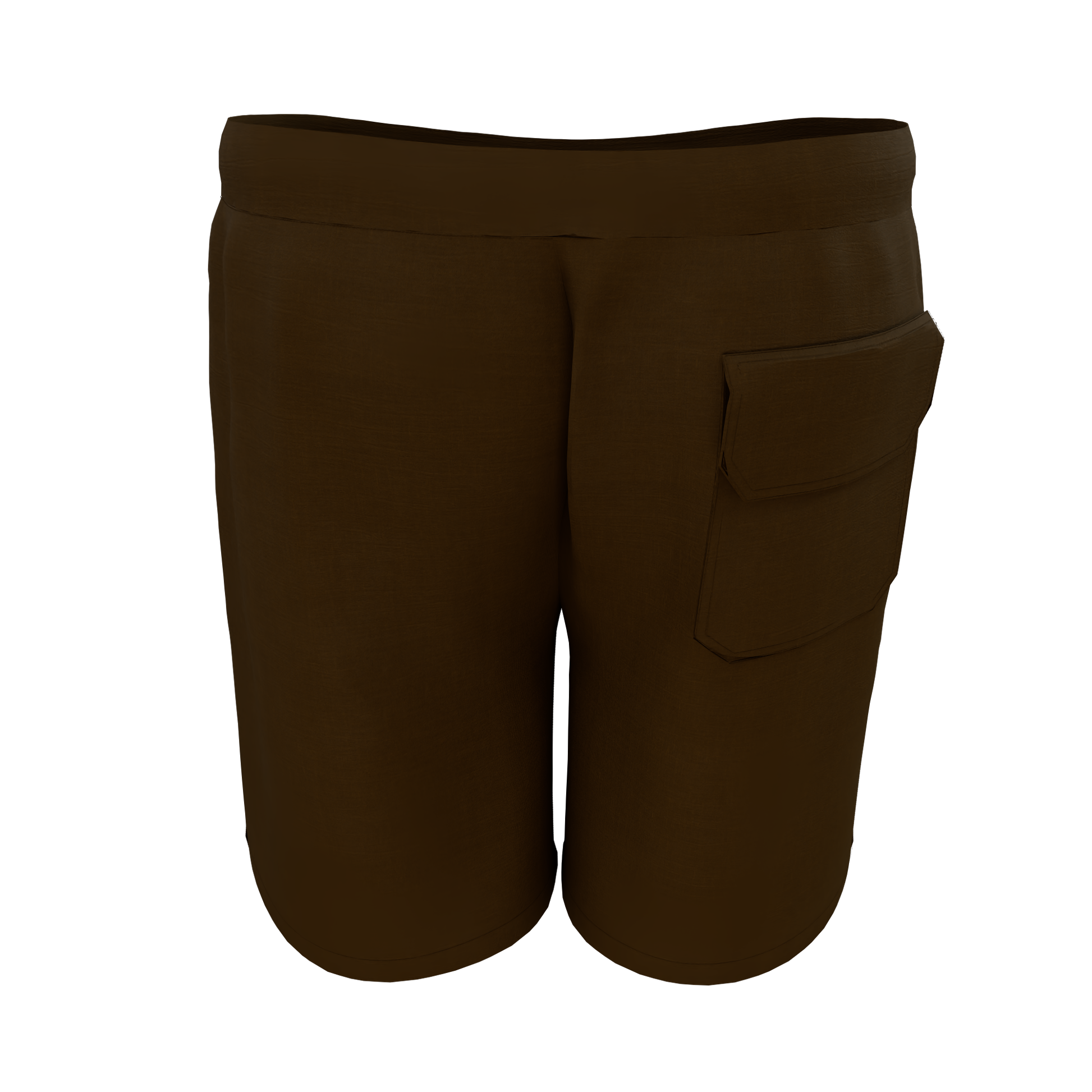 Our Dark Brown casual shorts. It is 92% Poly, 8% Spandex. It is stretchy, durable, quick drying, moisture wicking, and it is UV 50+.