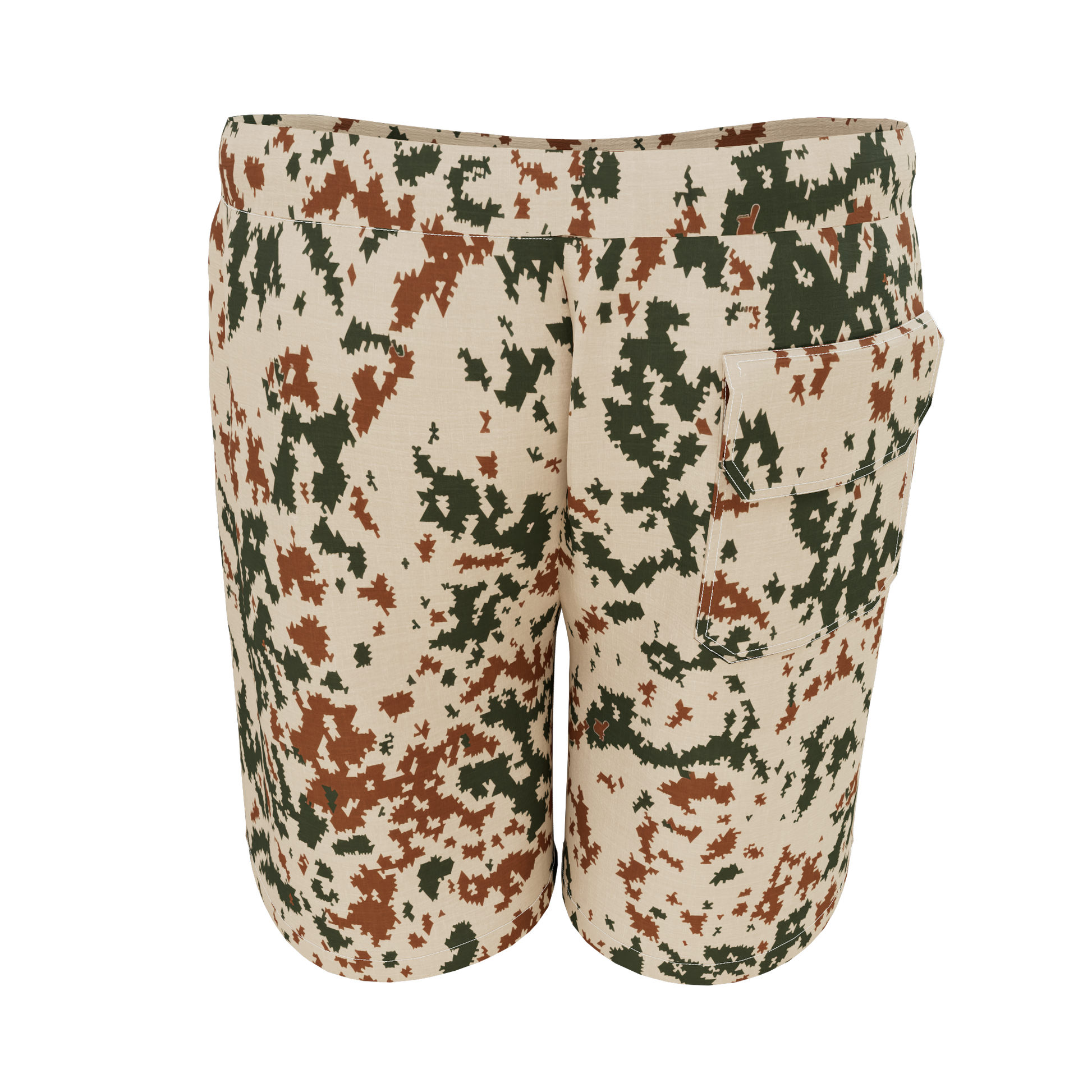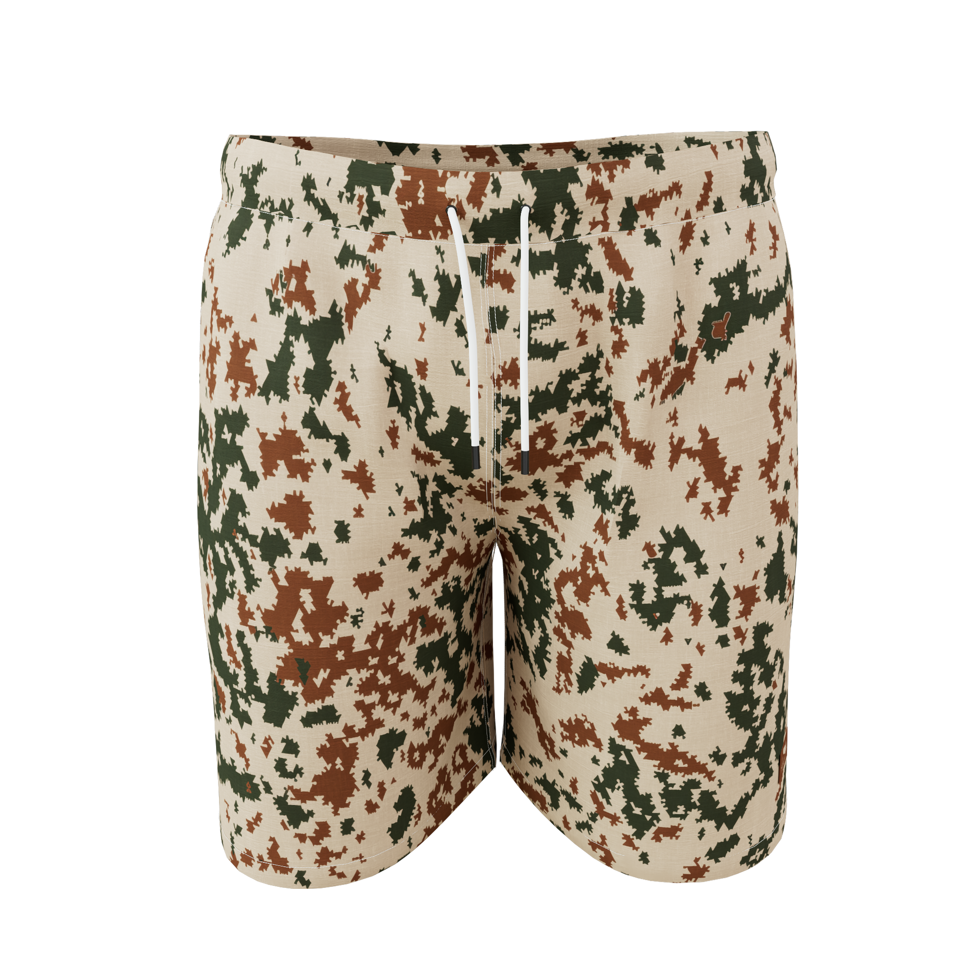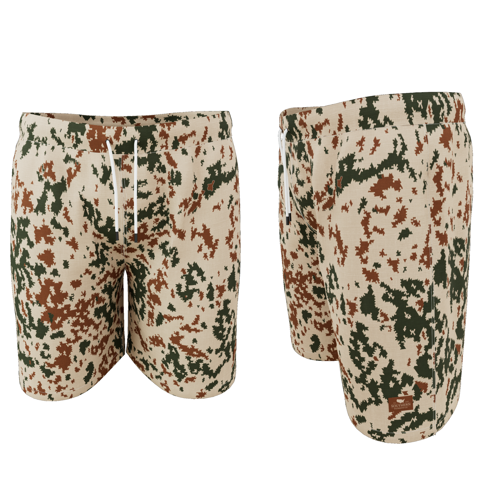Finnish M05 Desert Camo. It is 92% Poly, 8% Spandex. It is stretchy, durable, quick drying, moisture wicking, and it is UV 50+.