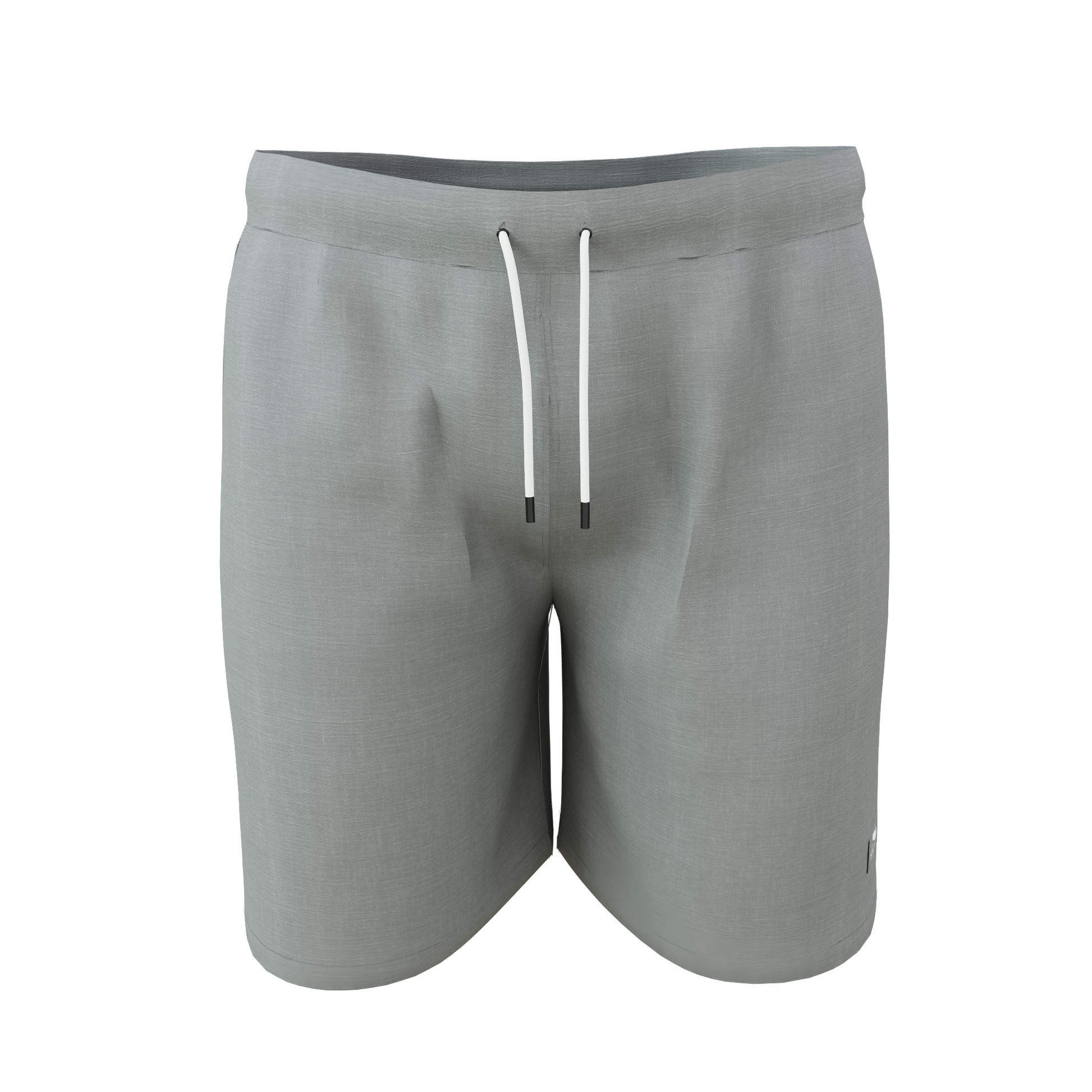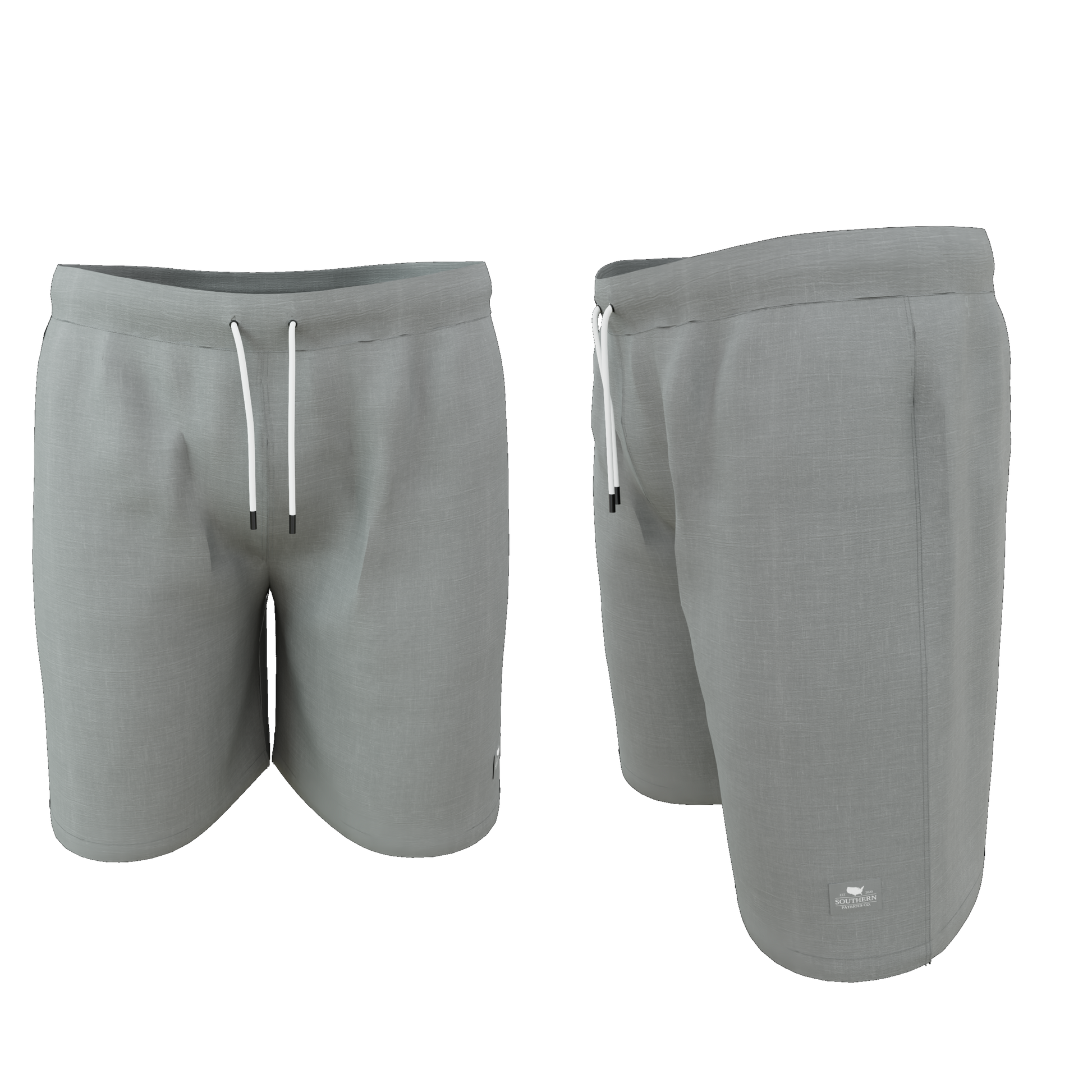 Our Gray casual shorts. It is 92% Poly, 8% Spandex. It is stretchy, durable, quick drying, moisture wicking, and it is UV 50+.