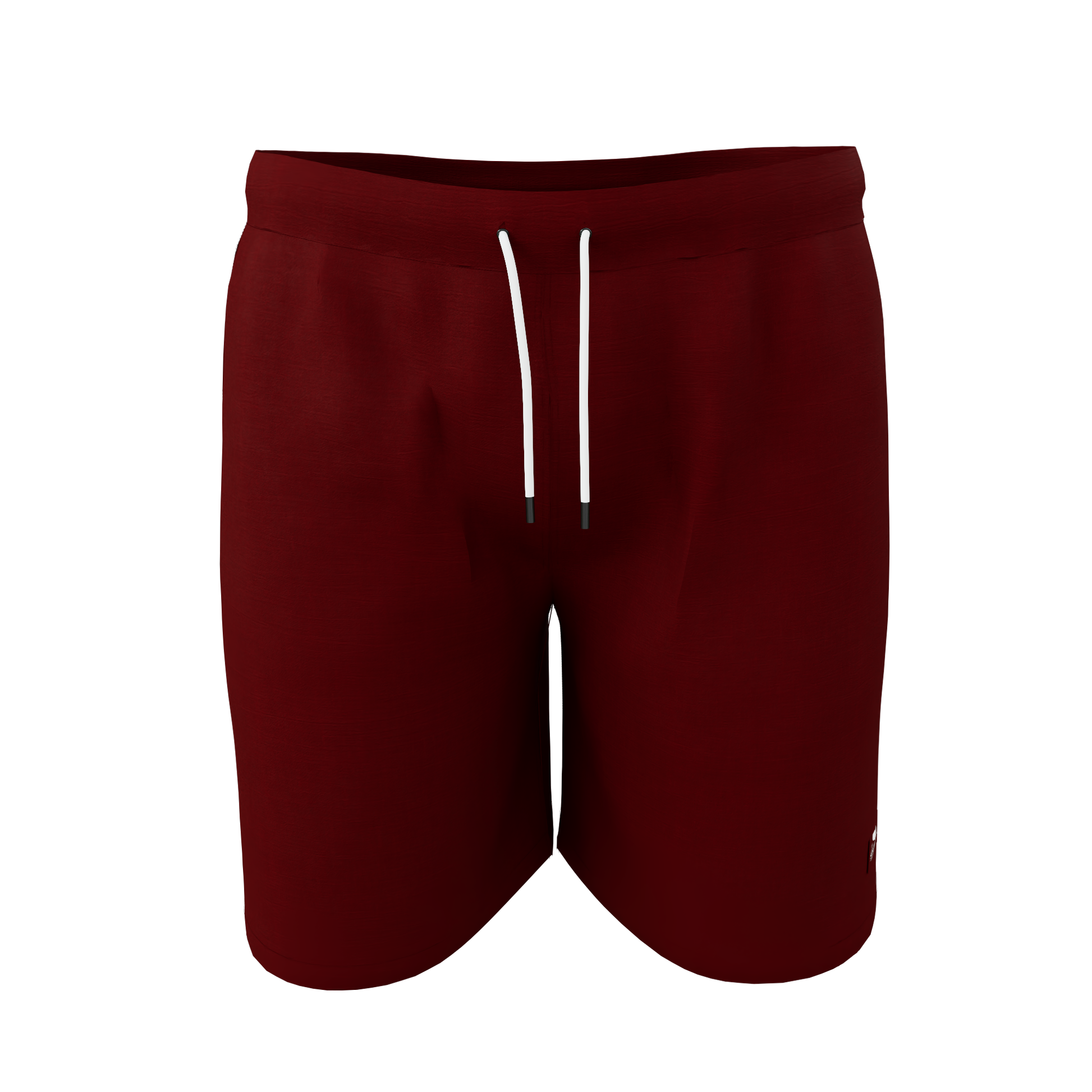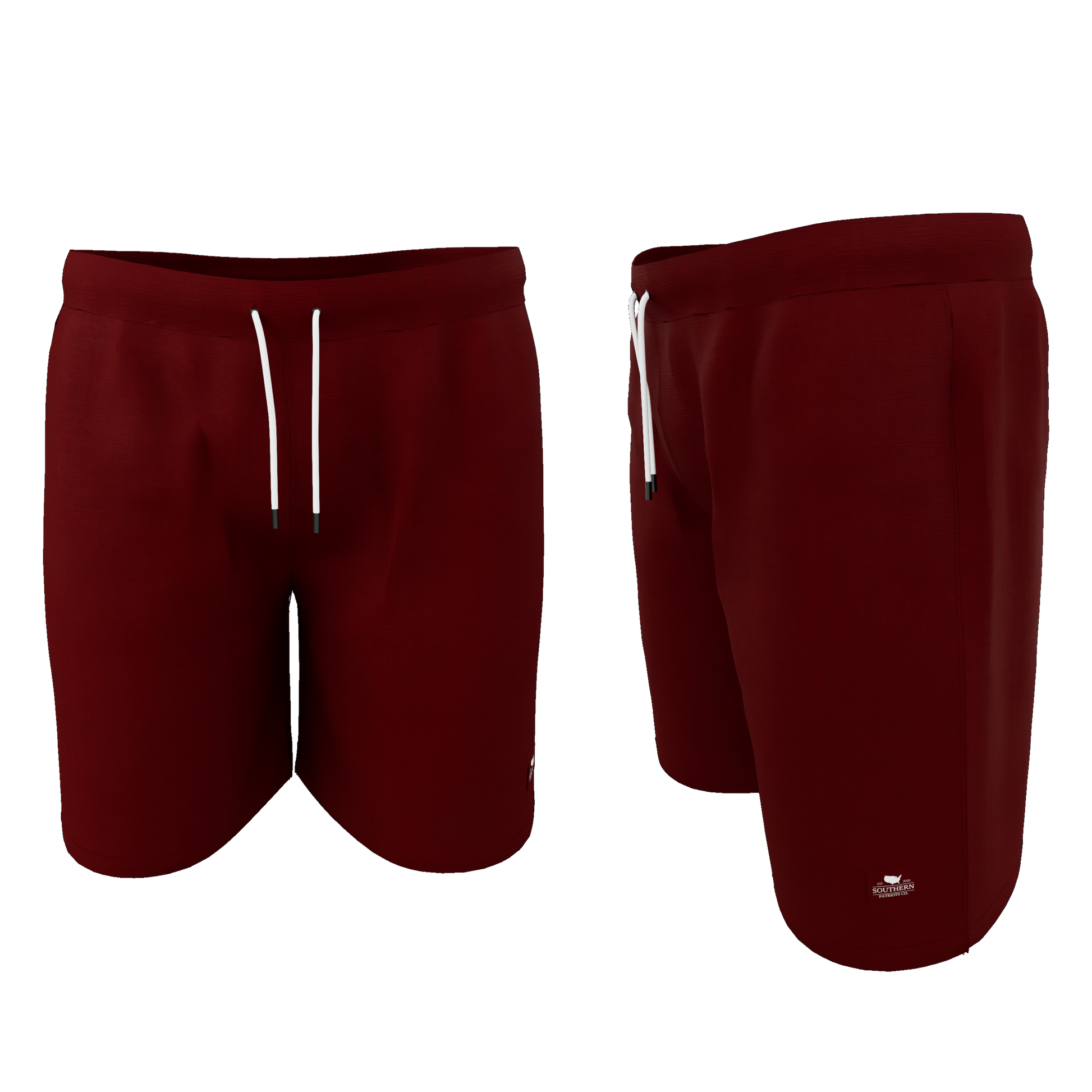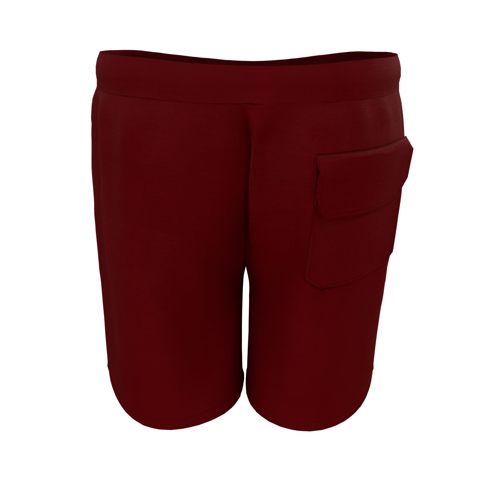 Our Maroon casual shorts. It is 92% Poly, 8% Spandex. It is stretchy, durable, quick drying, moisture wicking, and it is UV 50+.