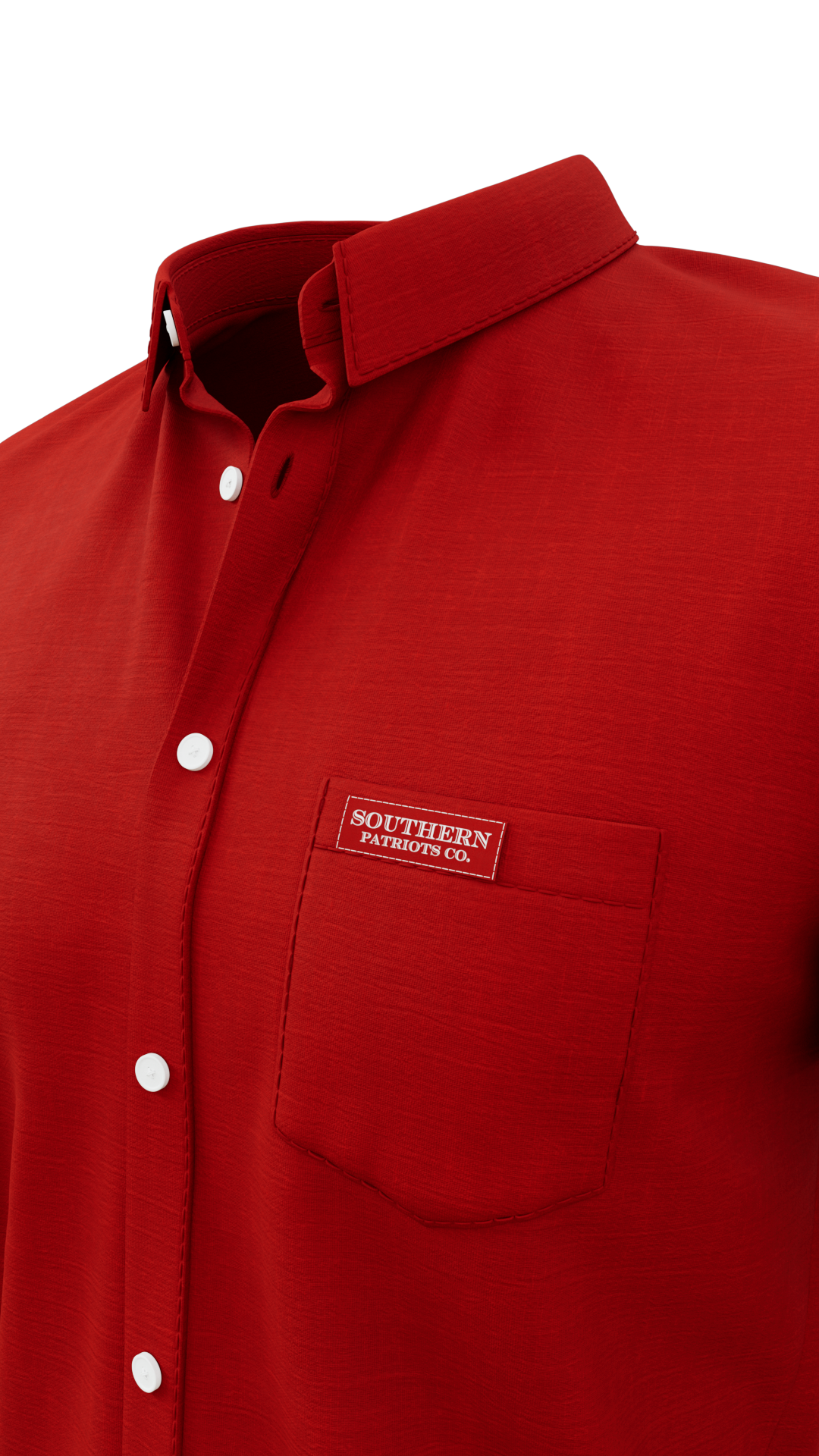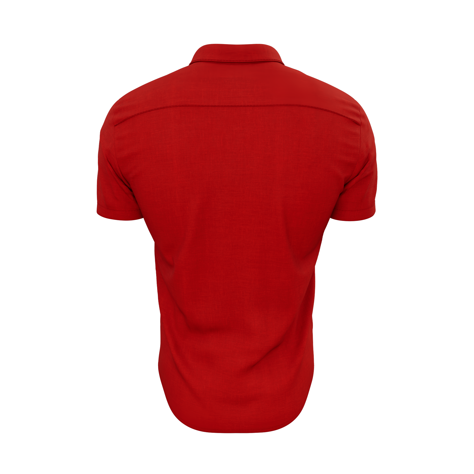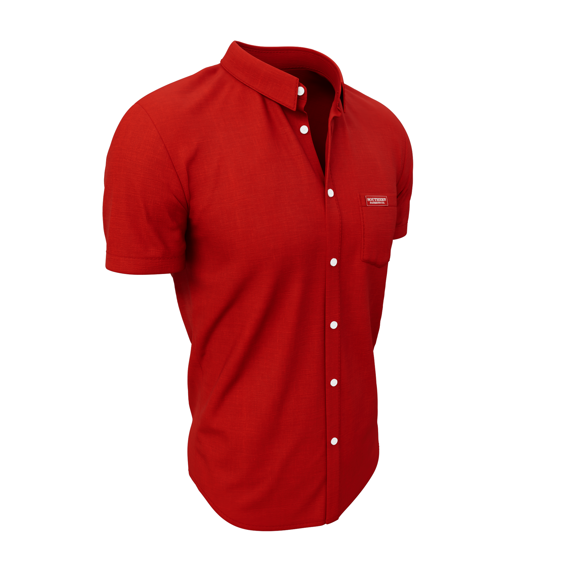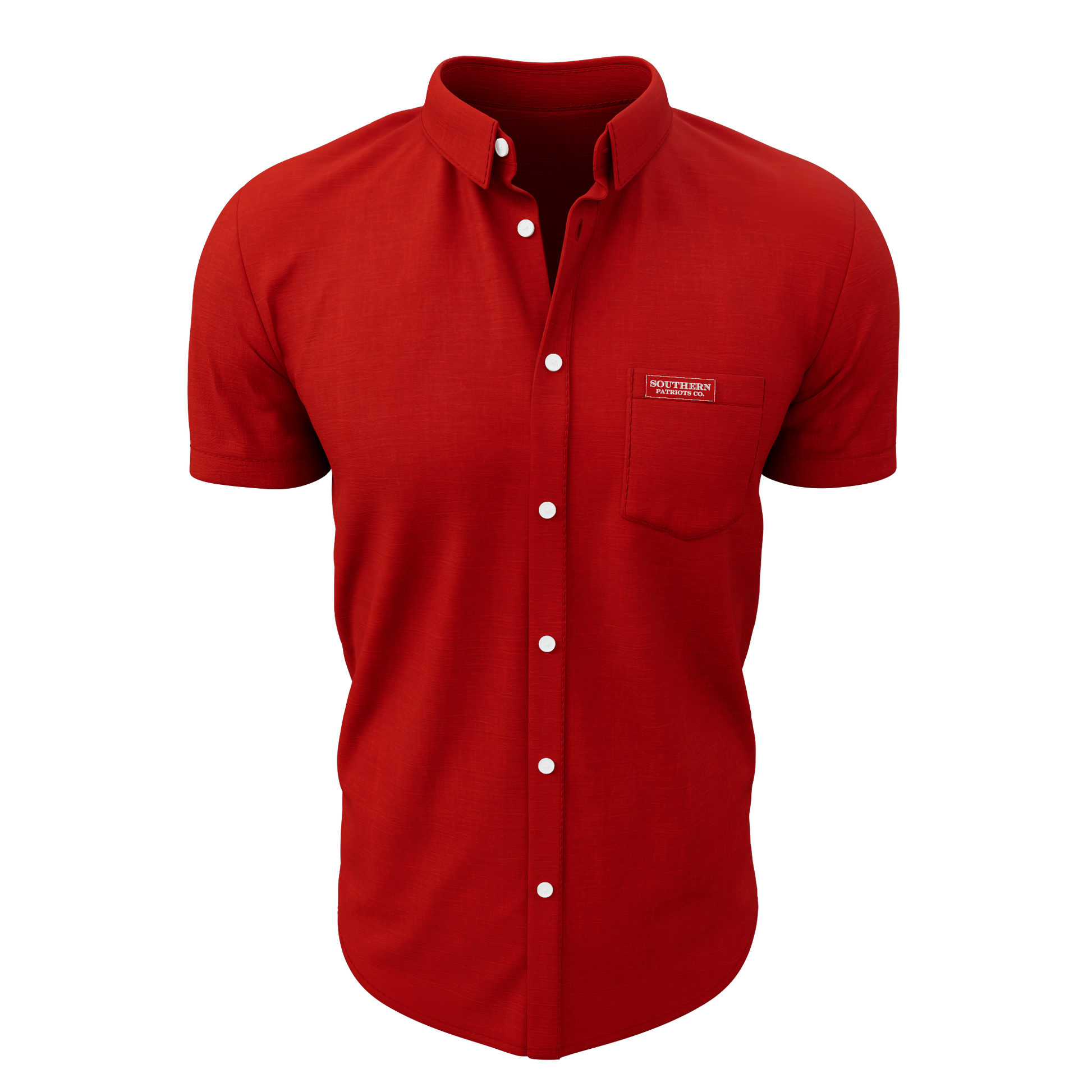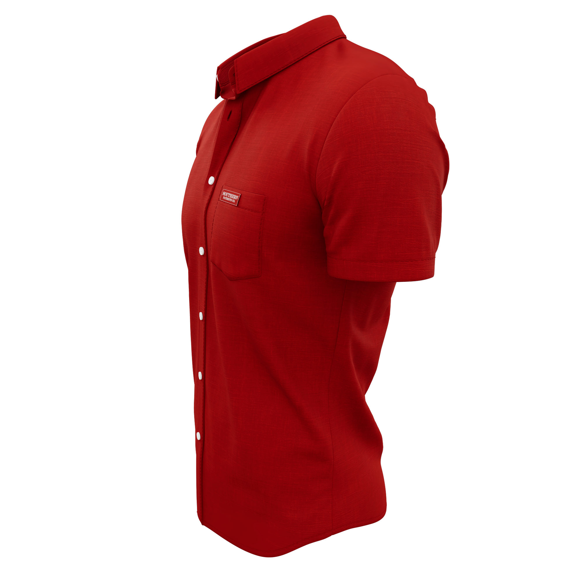 Our Red Button Down polo shirt. It is 92% Poly, 8% Spandex. It is stretchy, durable, quick drying, moisture wicking, and it is UV 50+.