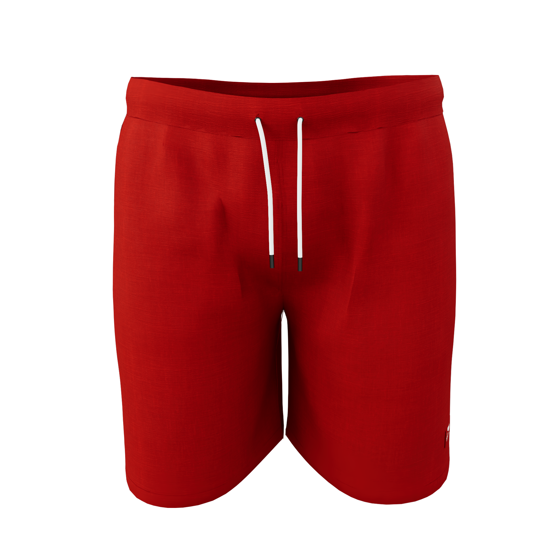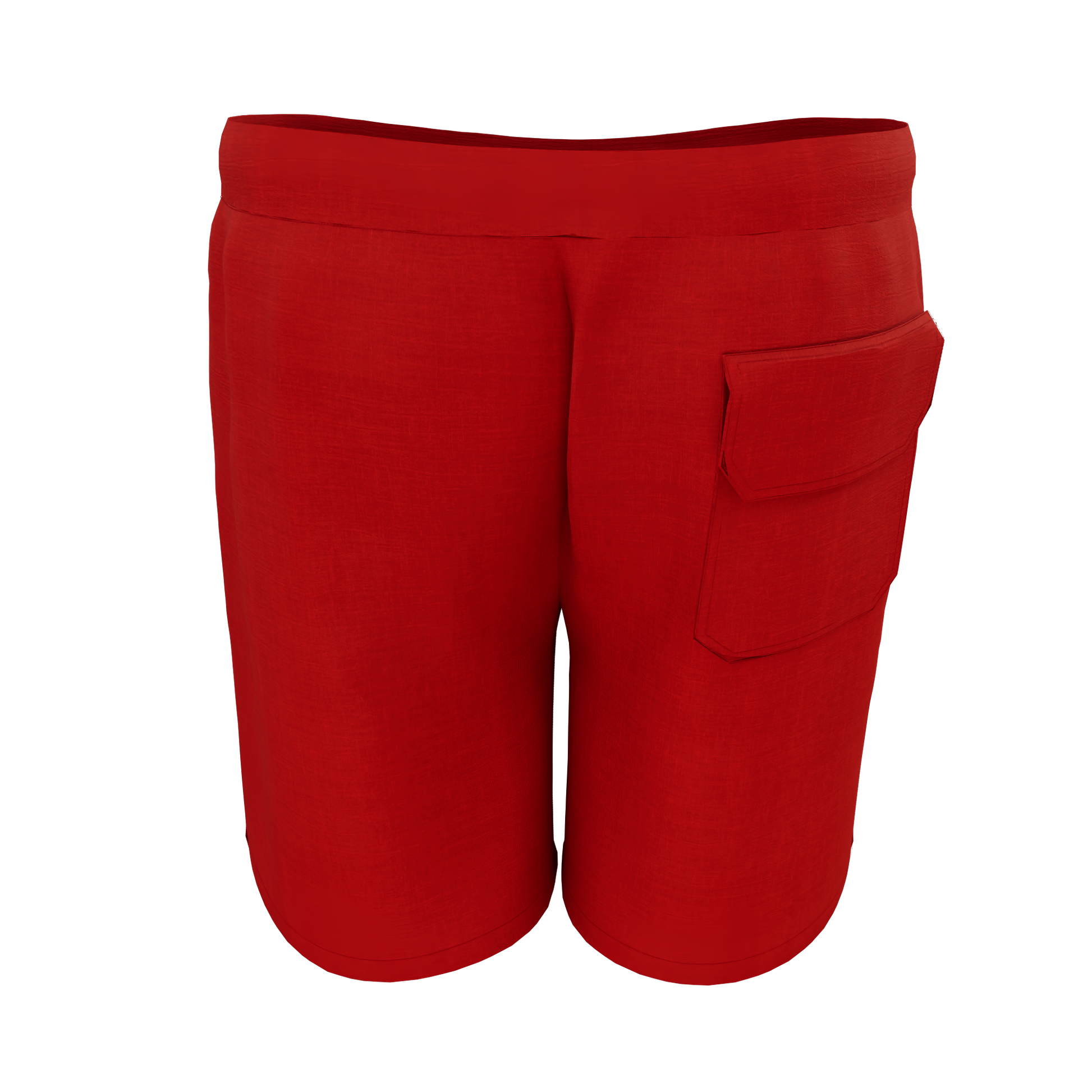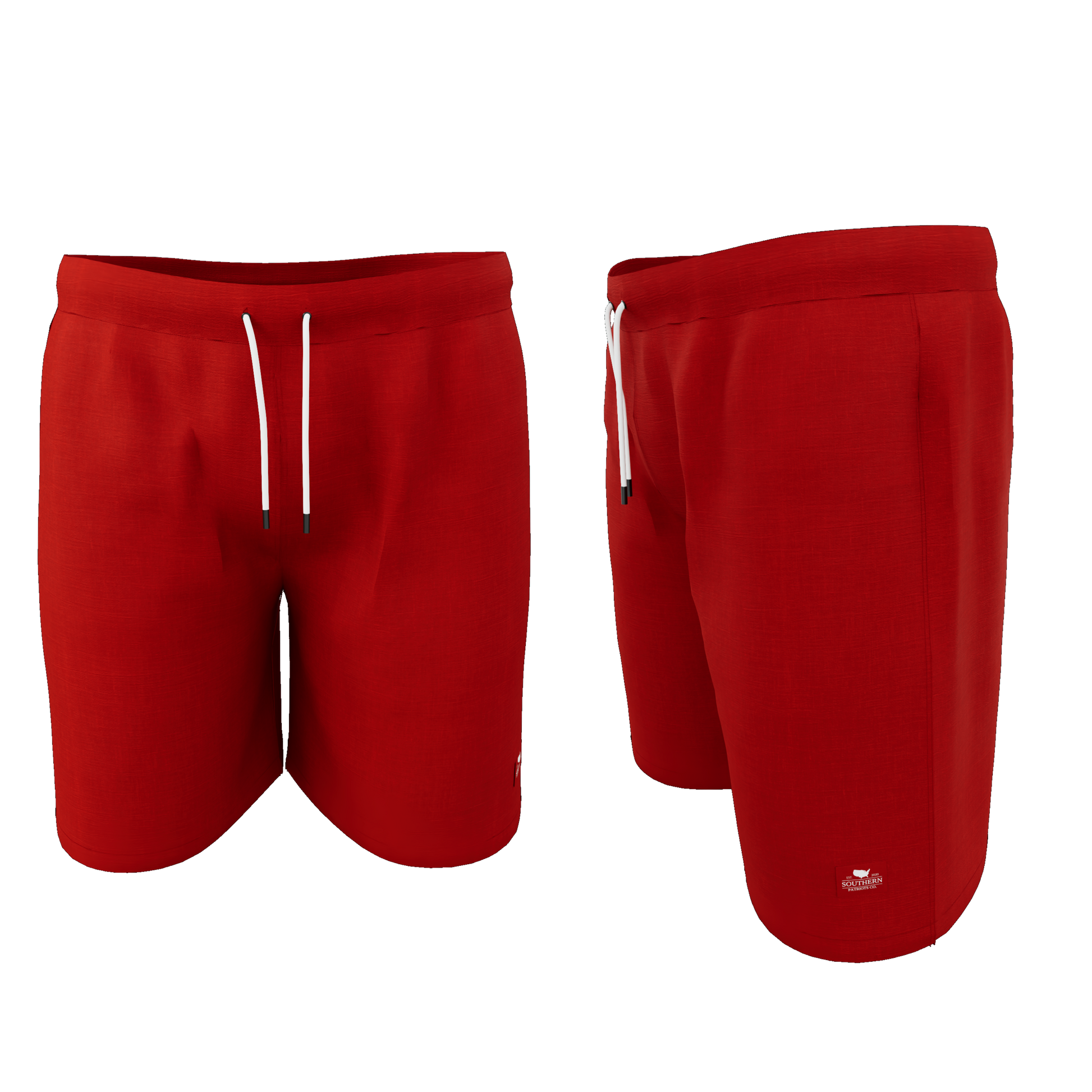 Our Red casual shorts. It is 92% Poly, 8% Spandex. It is stretchy, durable, quick drying, moisture wicking, and it is UV 50+.