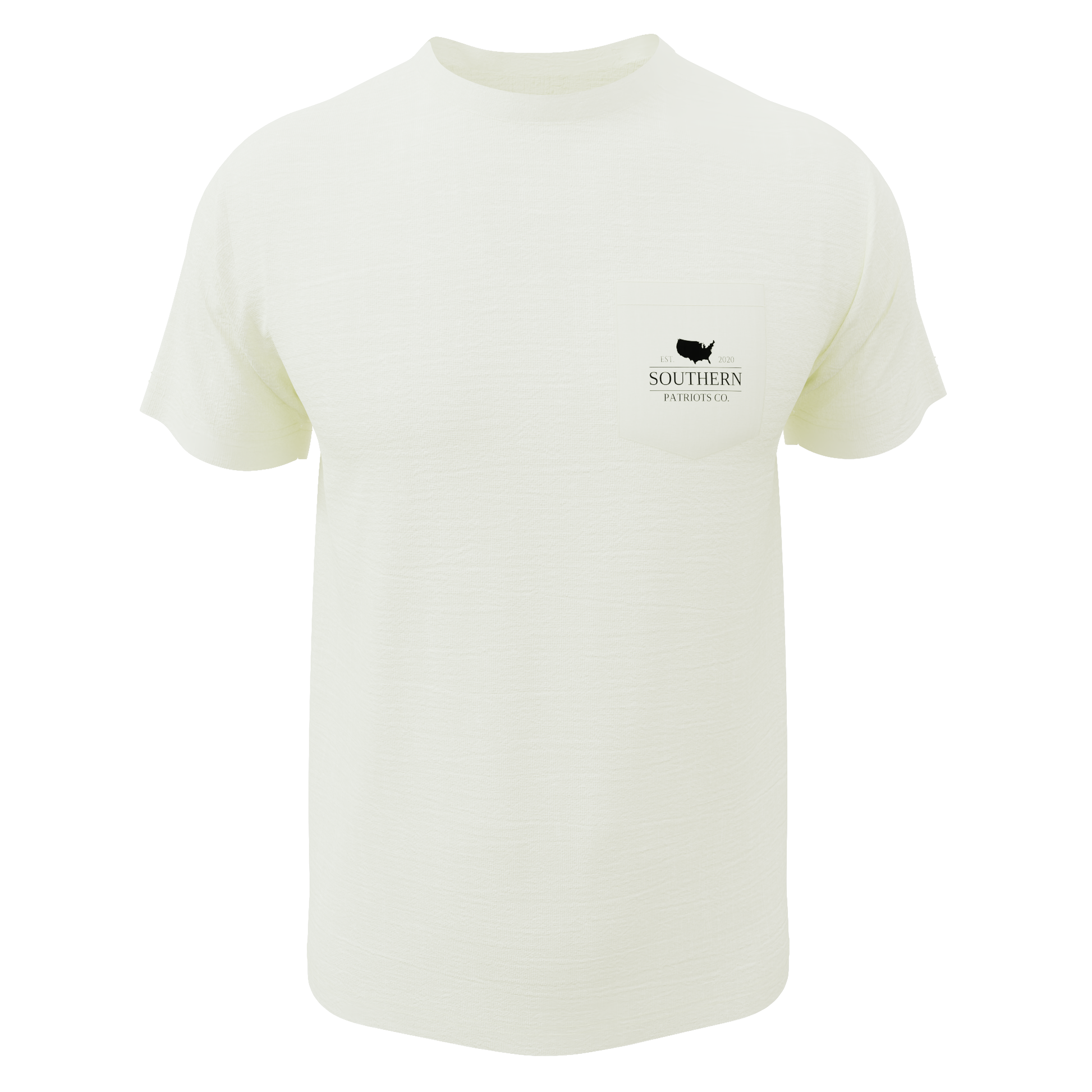Beige colored shirt. 50% Cotton, 50% Polyester.